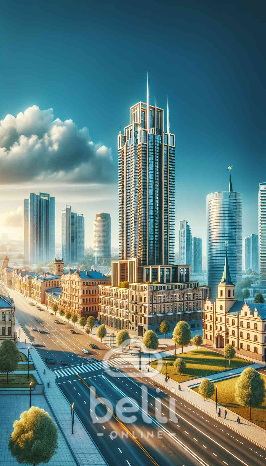 Нарисуй: как ты представляешь себе небоскреб в городе Лида, где его можно построить: может возле парка или возле лидского замка. Как он может выглядеть, нарисуй вид небоскреба как бы на его смотрит человек с тротуара